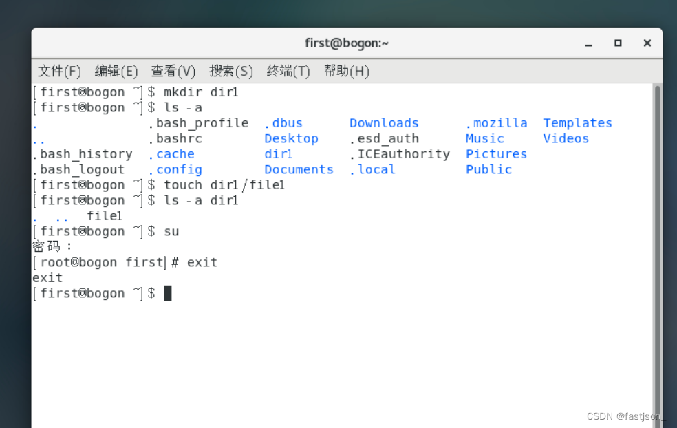 - touch dir1/file1 在dir1下创建文件file1