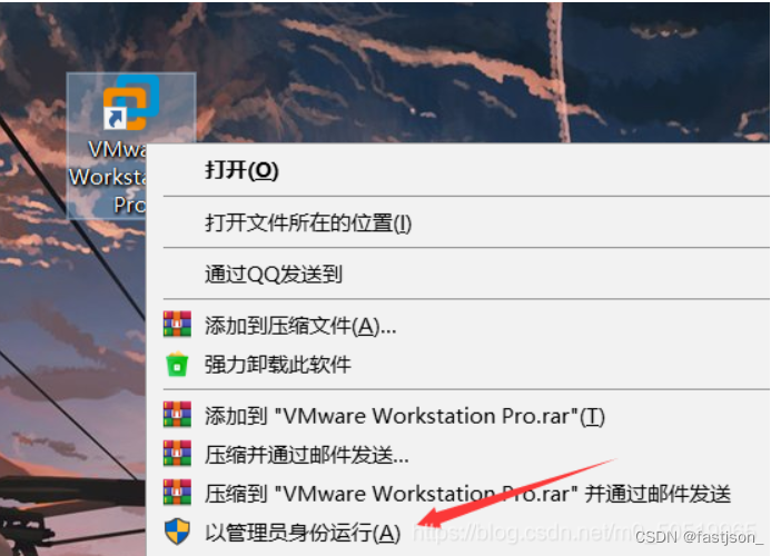 1、桌面上找到,VMware Workstation Pro,右击以管理员身份运行