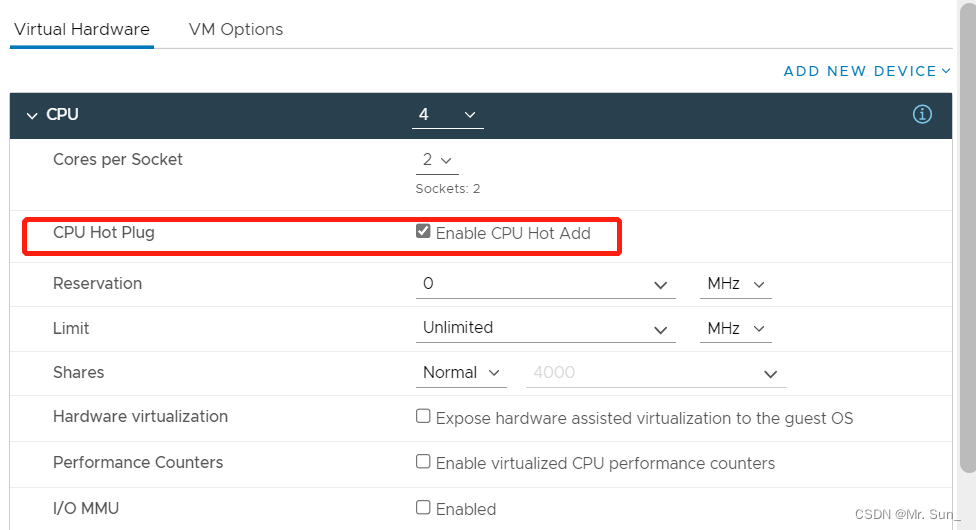 以上就是文艺唇彩最近收集整理的关于Vmware虚拟机热添加CPU与内存的全部内容,更多相关Vmware虚拟机热添加CPU与内存内容请搜索靠谱客的其他文章。