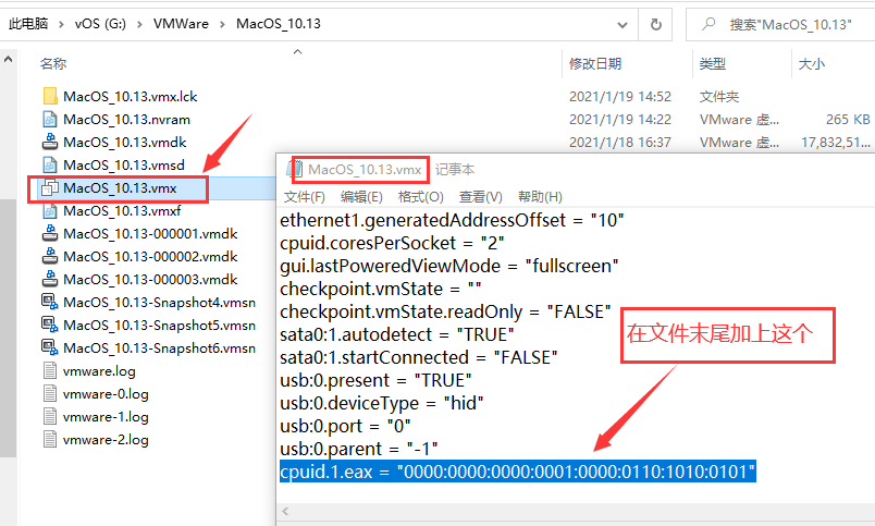 解决方法是:在 MacOS 虚拟机的配置文件 .vmx 文件的末尾加上下面这句话就可以了: