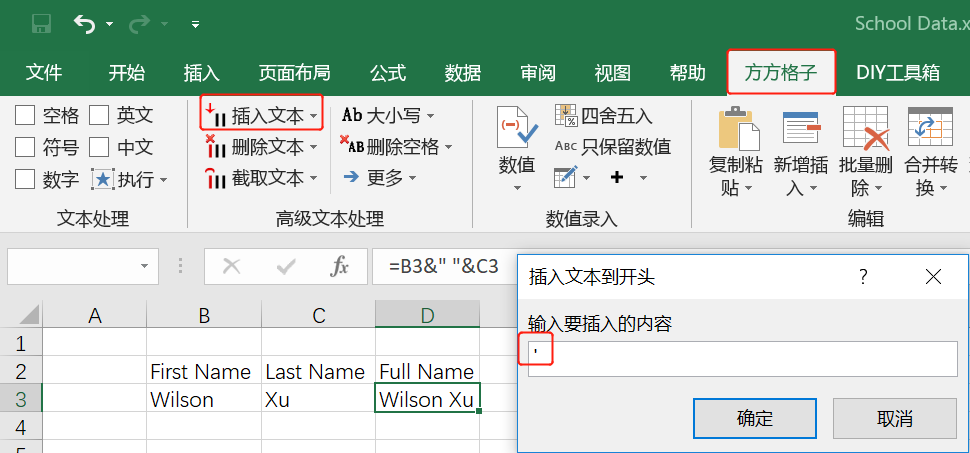 方法二:使用方方格子Excel插件工具,选中公式文本并在其前插入单引号。