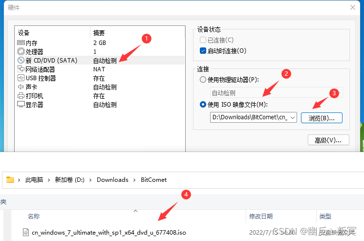 此问题主要是系统镜像设置导致,将虚拟的CD/DVD(IDE)物理驱动器的选项改为下方的使用ISO映像文件,选择系统映像文件,重新启动虚拟机。