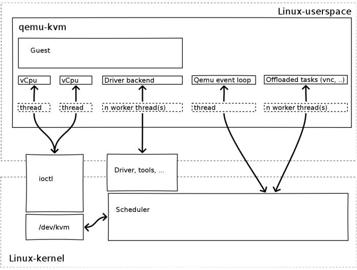 (2)一个 KVM 虚机即一个Linux qemu-kvm 进程,与其他 Linux 进程一样,被Linux 进程调度器调度。