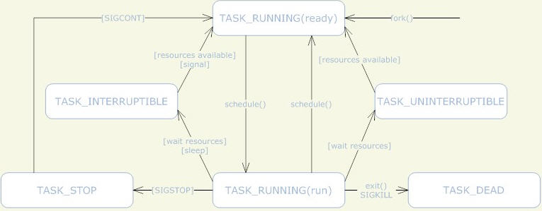 - 应用程序的代码运行在最低运行级别上ring3上,不能做受控操作。如果要做,比如要访问磁盘,写文件,那就要通过执行系统调用(函数),执行系统调用的时候,CPU的运行级别会发生从ring3到ring0的切换,并跳转到系统调用对应的内核代码位置执行,这样内核就为你完成了设备访问,完成之后再从ring0返回ring3。这个过程也称作用户态和内核态的切换。