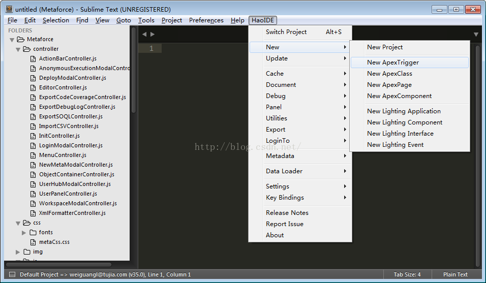 Sublime是一款极为轻量化的文本编辑器,能够兼容多种代码增强插件,HaoIDE提供了几乎所有的Force.com开发所需要的功能,从代码编辑到打包部署,都非常简单易用。