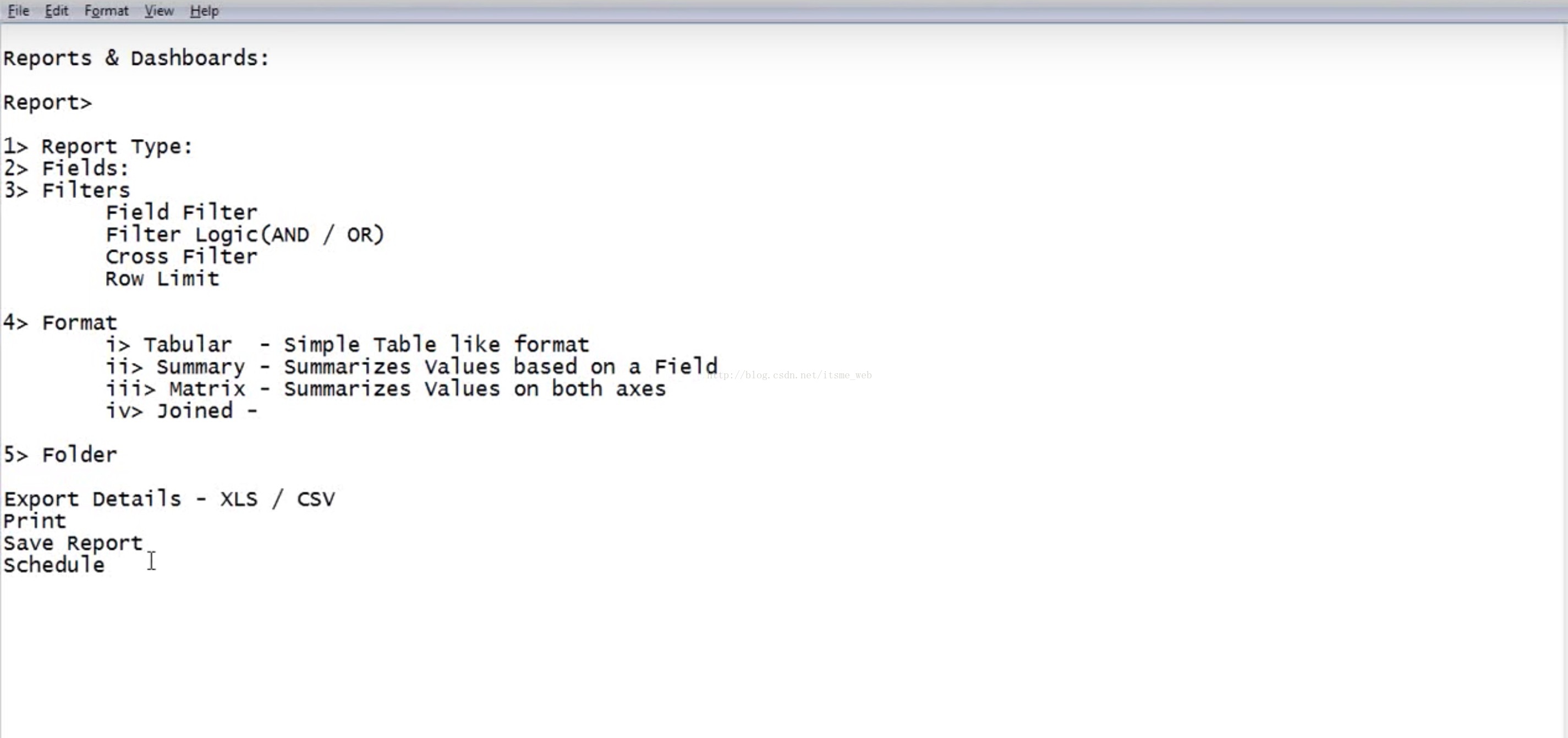 3、下面是根据资源:Reports & Dashboards in Salesforce | Tabular, Summary, Matrix & Joined Reports整理的图文笔记,以便快速上手: