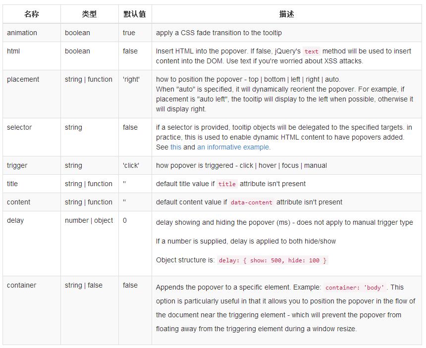 当提示框与.btn-group 或 .input-group联合使用时,你需要指定container: 'body'选项(见下面的文档)以避免不需要的副作用(例如,当弹出框显示之后,与其合作的页面元素可能变得更宽或是去圆角)。