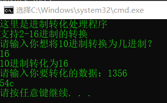 本代码可支持,10进制转换为任意进制的数(但不支持数字转变为字母)