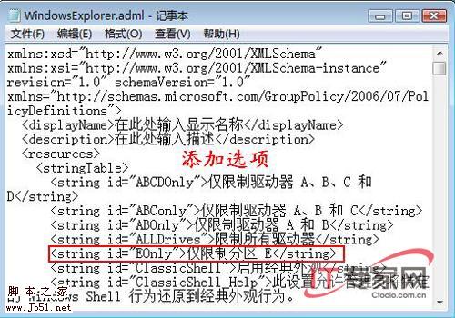 第二步:用记事本打开WindowsExplorer.admx文件,分别找到