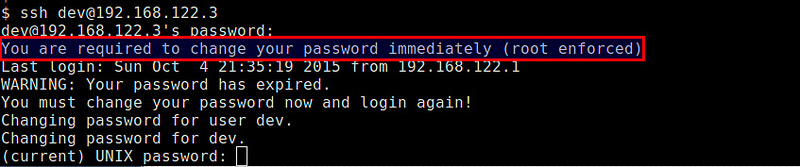 上面的命令和“chage -d0”作用一样,让当前用户的密码立即过期。