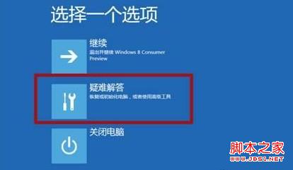 4、重启之后,发现“高级启动项”也是Metro界面,选择“疑难解答”。