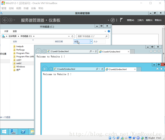 实验用VBox虚拟机来模拟IIS服务器与客户机,虚拟机之间采用内部网络的网络连接方式,其中Win2012-1(系统Windows Server 2012r2)来充当IIS服务器,Win2012-2为客户机(后面在做委派时需要多用一台服务器,这里用Win2012-3系统跟Win2012-1一样,来模拟IIS远程管理与功能委派实验)