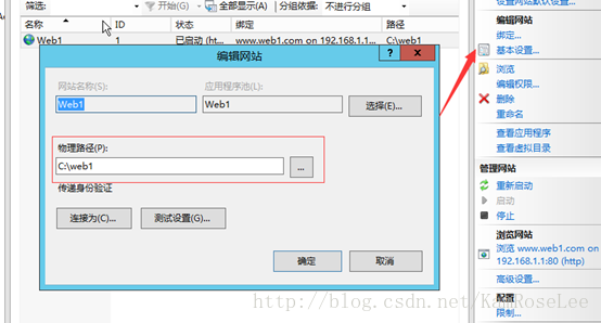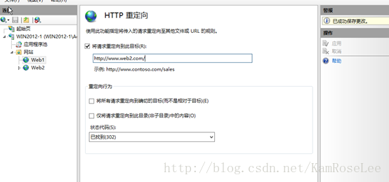 这里建多个网站Web2,用来测试,在Web1里的重定向地址指向Web2(设置完记得右边操作栏应用)