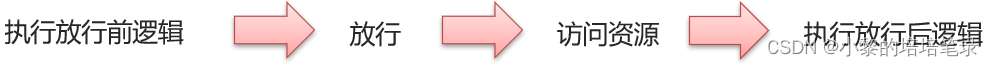 如果是重头执行的话,就意味着 `放行前逻辑` 会被执行两次,肯定不会这样设计了;所以访问完资源后,会回到 `放行后逻辑`,执行该部分代码。