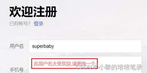 我们在用户名的输入框输入用户名,当输入框一失去焦点,如果用户名已经被占用就会在下方展示提示的信息;在这整个过程中也没有页面的刷新,只是在局部展示出了提示信息,这就是更新局部页面的效果。