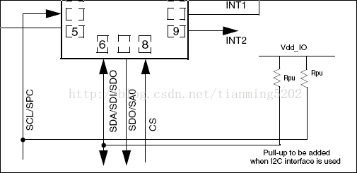 注:通过SA0 pin脚拉高拉低,有两个地址选择001100xb