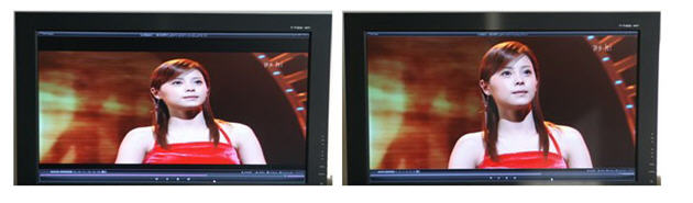 然而不支持1920X1080这个分辨率还不是最糟糕的,毕竟1024X768的分辨率也已经挺清楚了,而且字比较大,关键的问题是,如果使用 1024X768,画面就是4:3的,而电视是16:9的,这样就会看到画面被压扁了,感觉很差,如下图所示,左边是4:3比例的1024x768,右边 是16:9比例的1280x720。