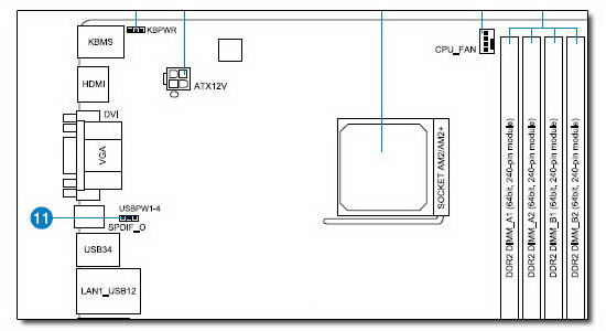 主板的SPDIF输出位置图(蓝色11标注处)