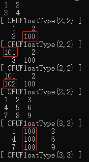 //将第1维度的索引号1、第2维度的索引号1处赋值为100