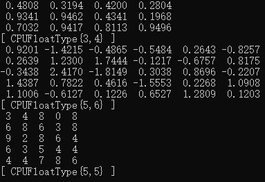 torch::Tensor a1 = torch::rand({ 2,3 }); //2行3列