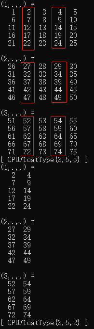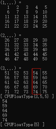 auto bx = a.index({ "...", 2, 3 }); //对所有第1维度,取第2维度索引号为2、第3维度索引号为3的数据