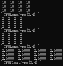 auto b = torch::full({ 3,4 }, 10); //定义3行4列张量,并初始化全部值为0