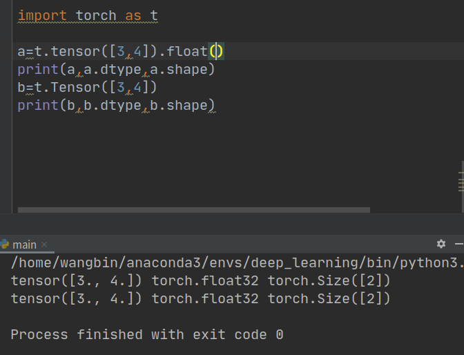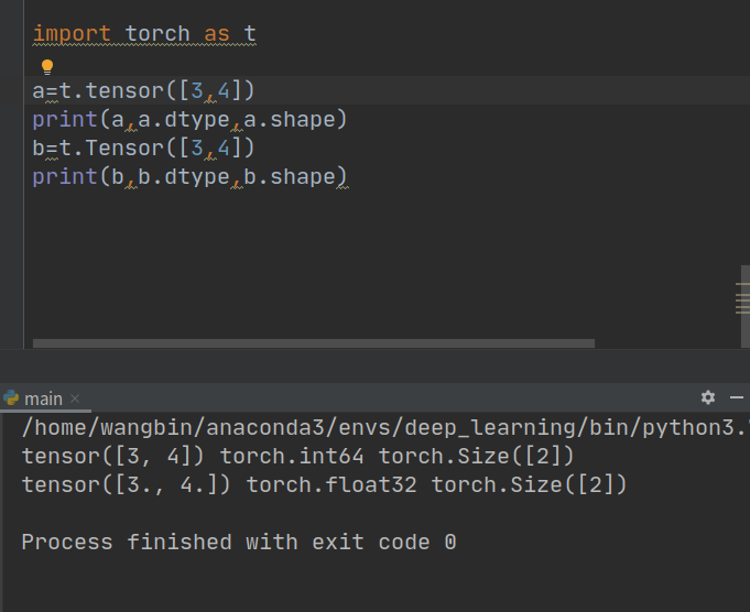 不同点:Tensor可以创造矩阵(向量),但是tensor不可以(tensor输入参数只能是一个)。