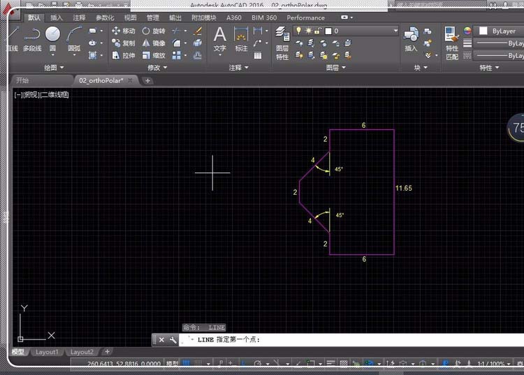 4、开正交限制光标命令F8方便,但是不能画一些角度的,那怎么办