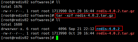 [root@redis02 softwares]# tar -xzf redis-4.0.2.tar.gz