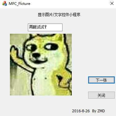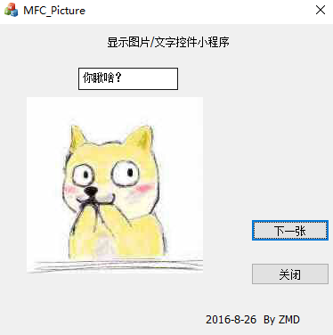 以上就是顺利小天鹅最近收集整理的关于MFC入门(三)-- MFC图片/文字控件(循环显示文字和图片的小程序)的全部内容,更多相关MFC入门(三)--内容请搜索靠谱客的其他文章。