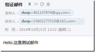 $mail->Body = "Hello,这是测试邮件"; //邮件内容