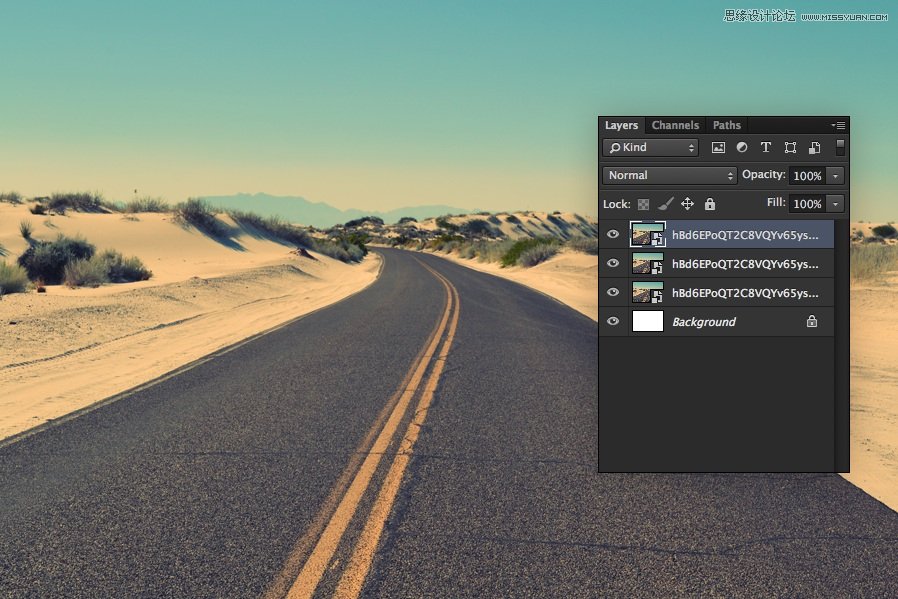 将背景图拖进来,右键转换成智能对象,复制两次,这样你就有了3个相同的图层