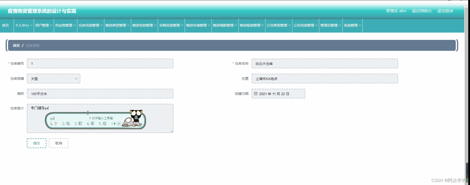 以上就是繁荣泥猴桃最近收集整理的关于springboot毕设项目疫情物资管理系统的设计与实现j616w(java+VUE+Mybatis+Maven+Mysql)的全部内容,更多相关springboot毕设项目疫情物资管理系统内容请搜索靠谱客的其他文章。