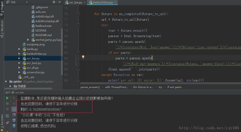 ocr_bw2.py,这个是根据题目+答案,去百度检索,通过爬虫抓取百度的收录数,然后在控制台打印结果