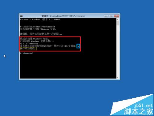 6、之后会依次列出所有已安装的Windows系统并询问是否添加到启动列表,如果要添加就键入Y,不添加键入N,键入A一次性添加全部,完成后关闭命令提示符重启即可