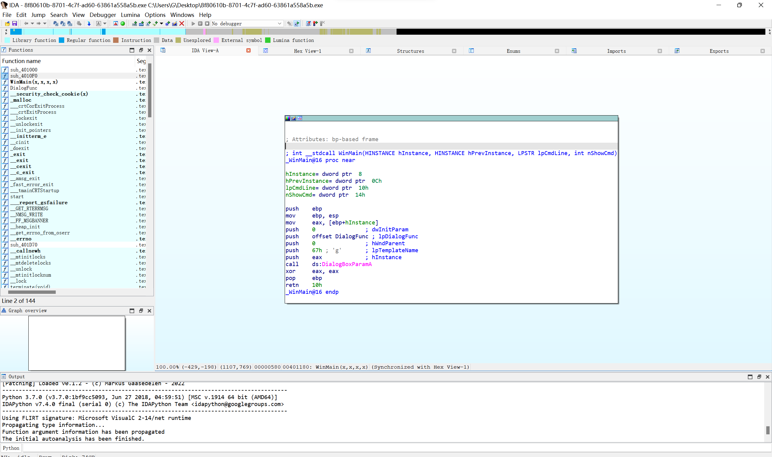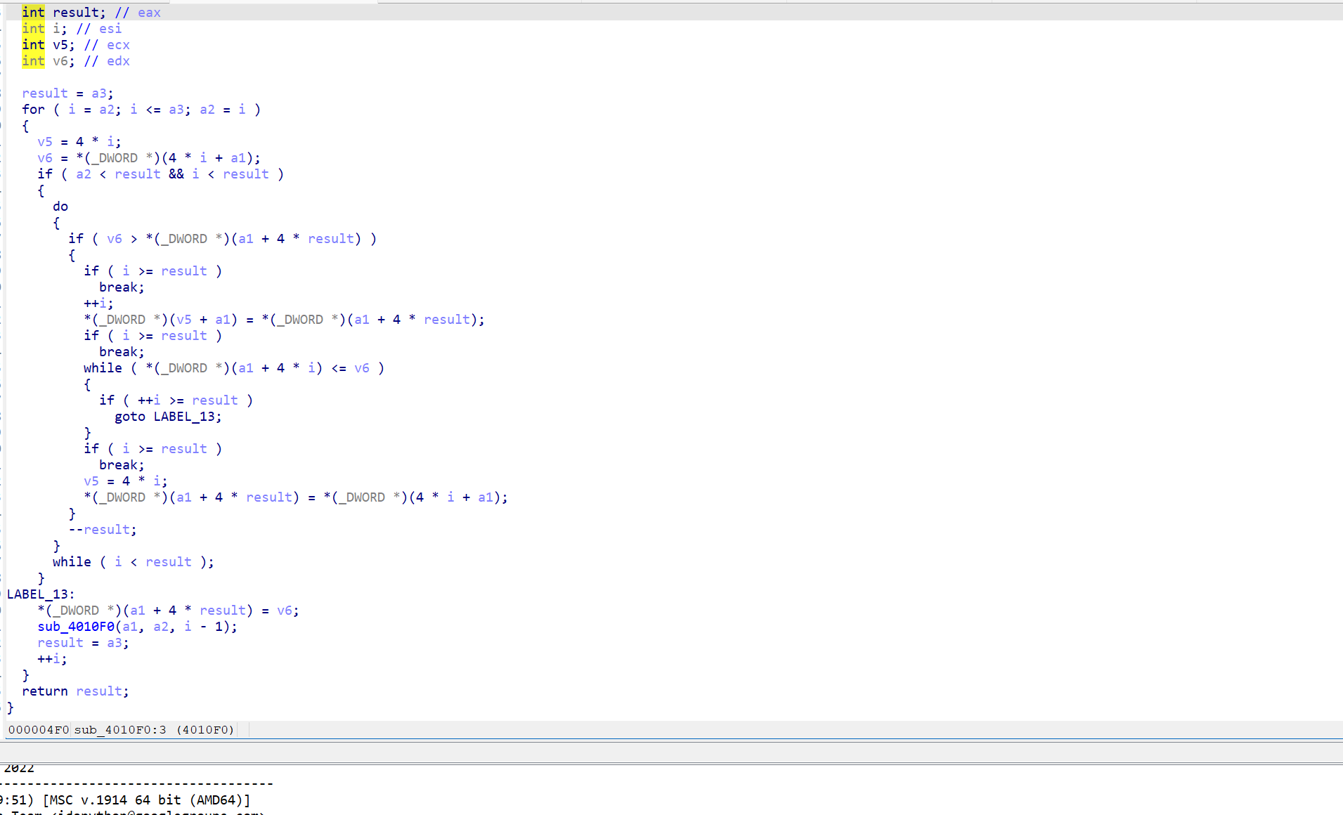 由strlen(String) == 8 得flag有八位,下面出现一个 sub_4010F0(v7, 0, 10);对v7进行处理,跟进看一下,