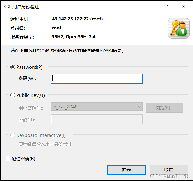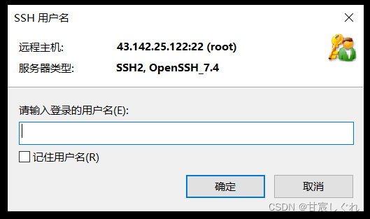 就会出现这个界面,如果是第一次登陆服务器,用户名就是root: