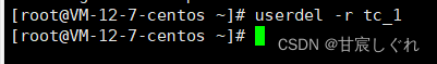 userdel就是删除的意思,-r是强行删除。这里我们需要进入root用户才能删除普通用户。
