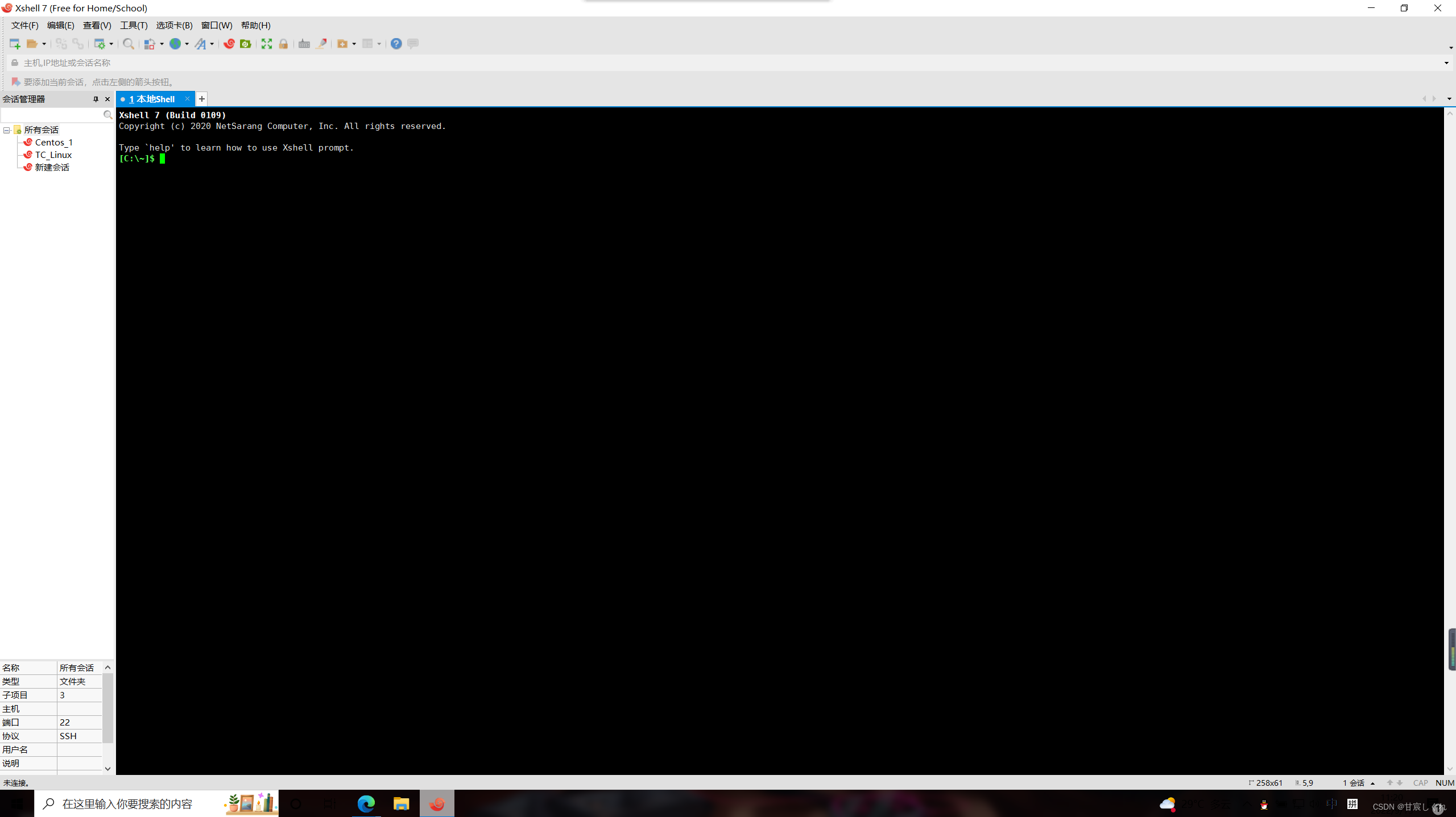 接下来就是打开XShell,因为我这个界面的很早处理过了,所以没有初始化的界面要求,你们直接跳过那么要求就行(接受的接受等):