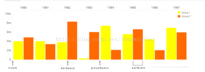 备注:barChart.groupBars(1f, groupSpace, barSpace);的含义可参考下面的示意图(网上截取的)