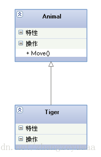 【泛化关系】:是一种继承关系,表示一般与特殊的关系,它指定了子类如何特化父类的所有特征和行为。例如:老虎是动物的一种,即有老虎的特性也有动物的共性。