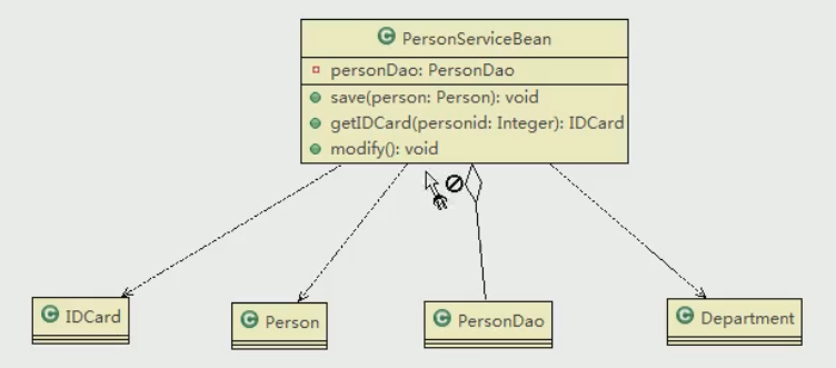 只要是在类中用到了对方,那么他们之间就存在依赖关系。如果没有对方,连编绎都通过不了。