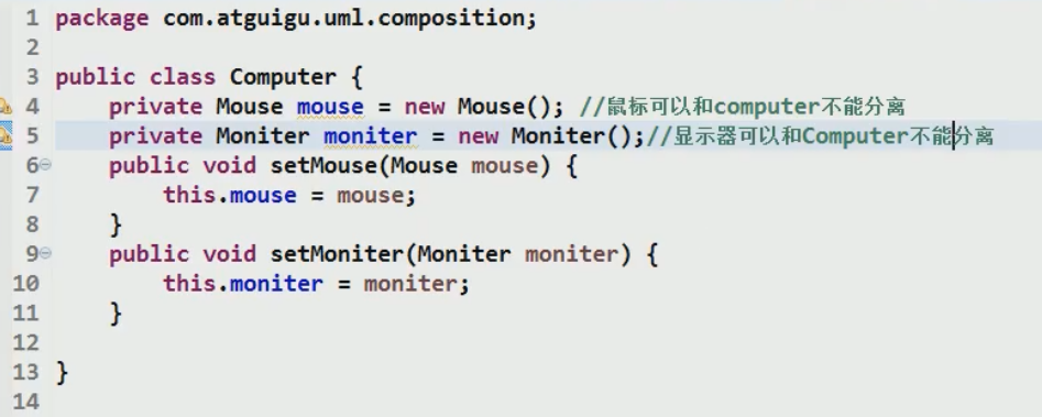 mouse和monitor由computer类创建,因此,computer被销毁时,mouse和monitor也会被销毁。