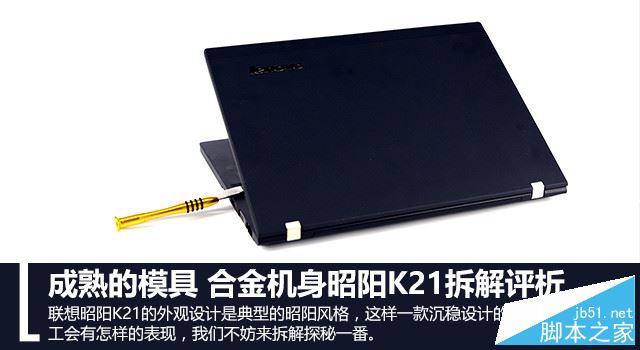 联想昭阳K21的外观设计是典型的昭阳风格,这一点从A面和转轴部分就能明显感觉出来。第一眼你可能不会觉得这是一台铝镁合金机身的机器,因为无论是看起来还是摸上去都给人一种类肤的亲切感。昭阳K21整体外观比较方正,搭配黑色机身显得特别沉稳踏实。这样一款沉稳设计的商务本其内部做工会有怎样的表现,我们不妨来拆解探秘一番。