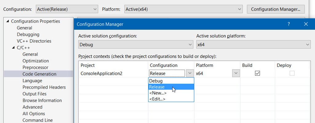 另外,默认情况下,V8是在发布模式下构建的。 为了避免这样的失配误差这样 ,我们需要设置该项目,以发布配置: