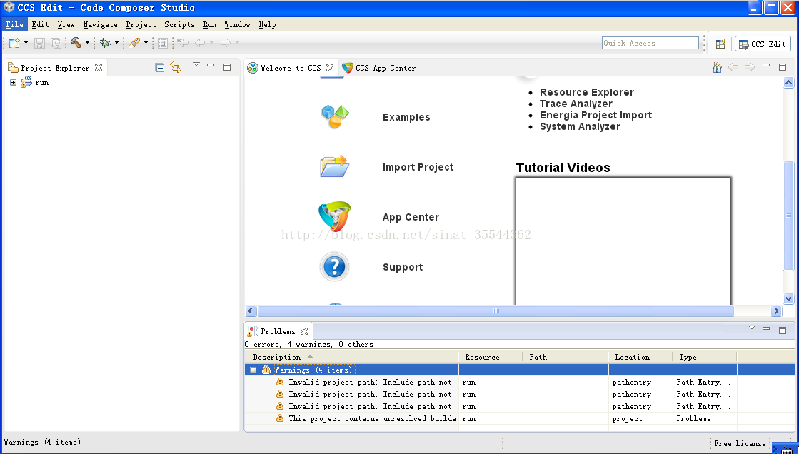 Unrecognized product of type 'com.ti.rtsc.XDAIS' is required by project 'run' - please install at least one product of this type before building this project.