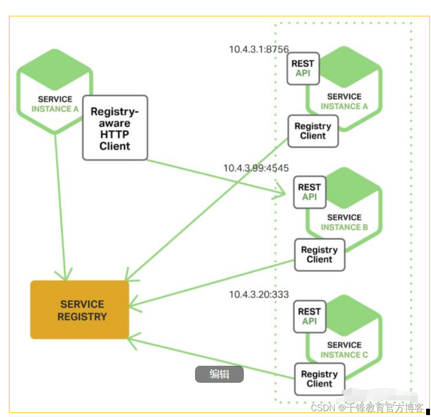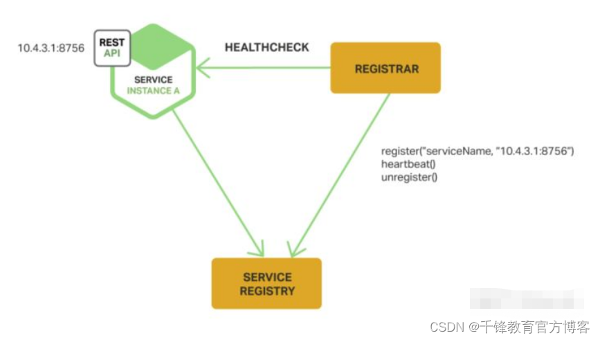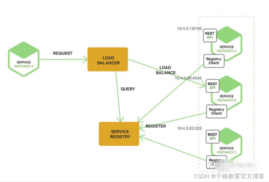 服务发现的关键是服务注册表,服务注册表是可用服务实例的数据库,它提供了管理和查询使用的API。服务实例使用这些管理API进行服务的注册和注销,系统组件使用查询API来发现可用的服务实例。