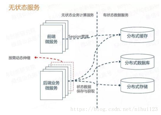 那么这个无状态服务原则并不是说在微服务里就不允许存在状态,表达的真实意思是要把所有状态的业务服务改变为无状态的计算类服务,那么状态数据也就是相应的迁移到对应的有状态数据服务中。