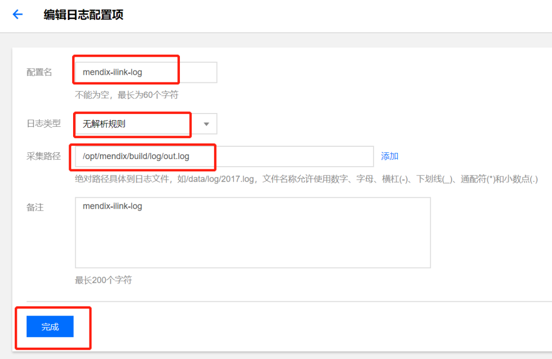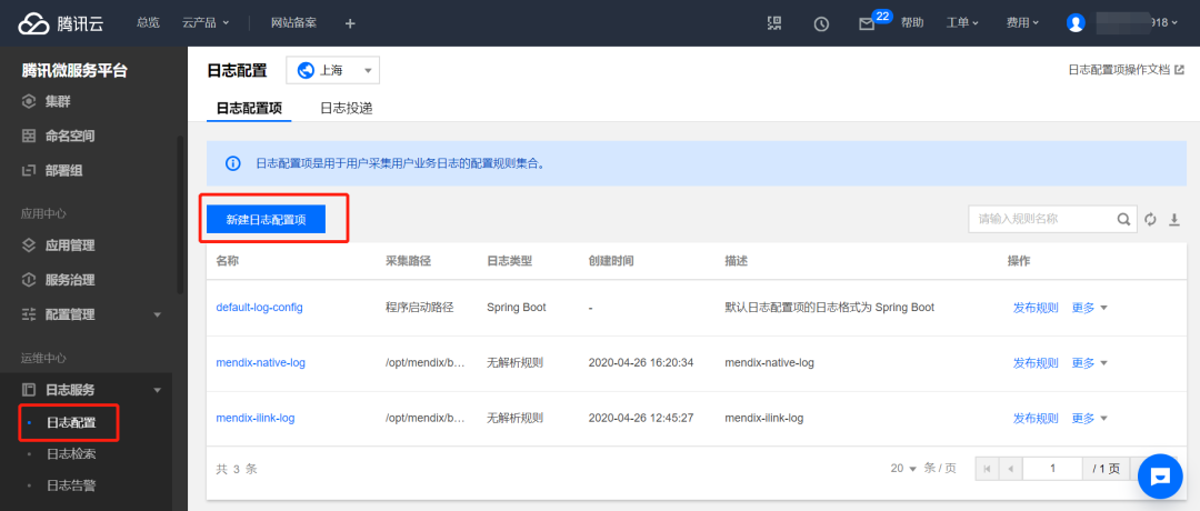 新建日志配置项