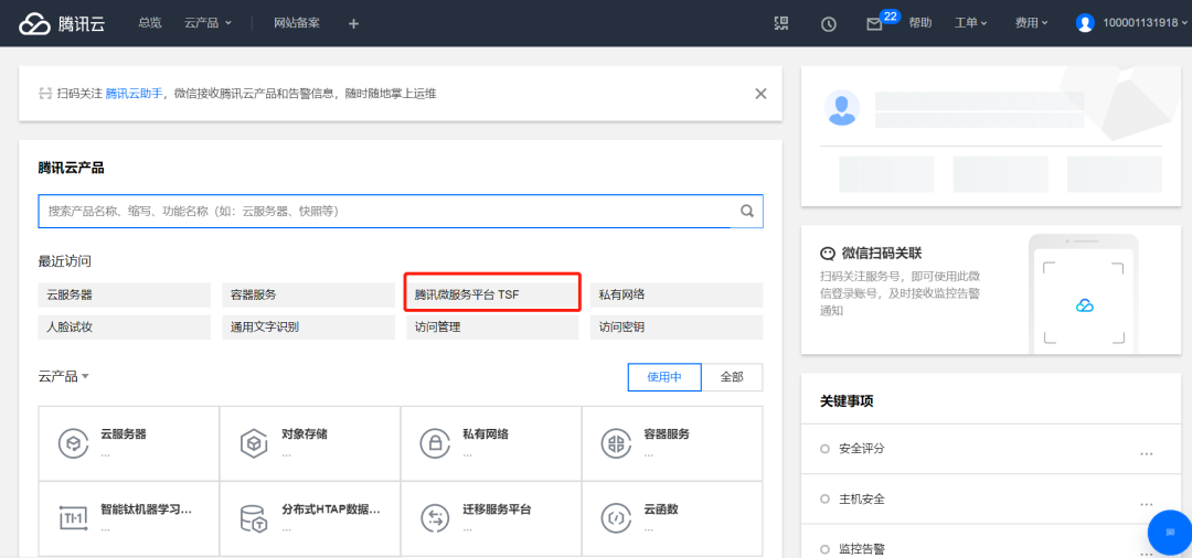 进入腾讯微服务平台TSF: